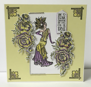 I've been having a play with the roaring 20's lady, corner and sentiment stamps.